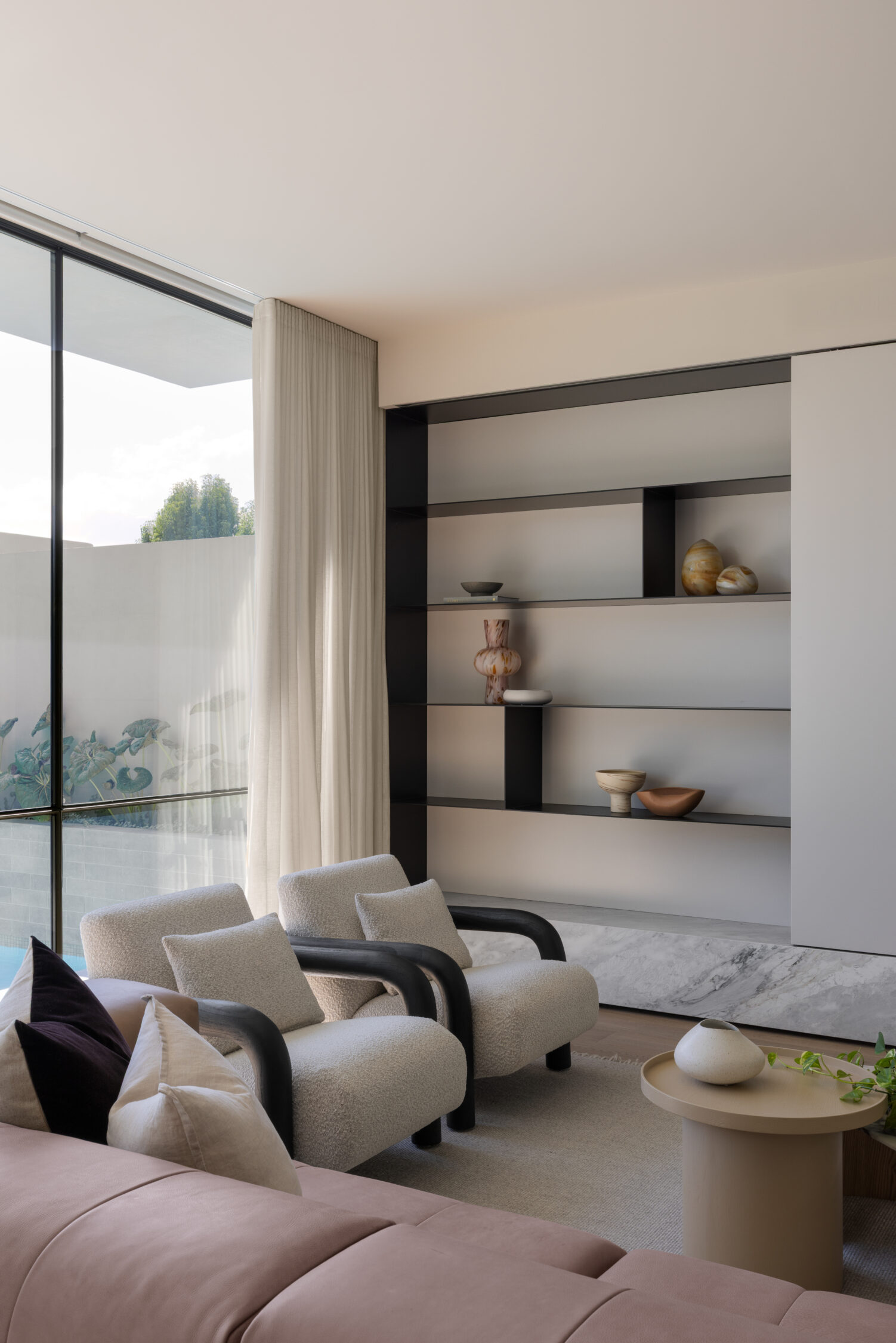 Subtle curves are introduced throughout to soften transitions and guide movement. They’re not overplayed, but they make a difference—removing the harshness of purely linear design and improving how the home feels to live in.